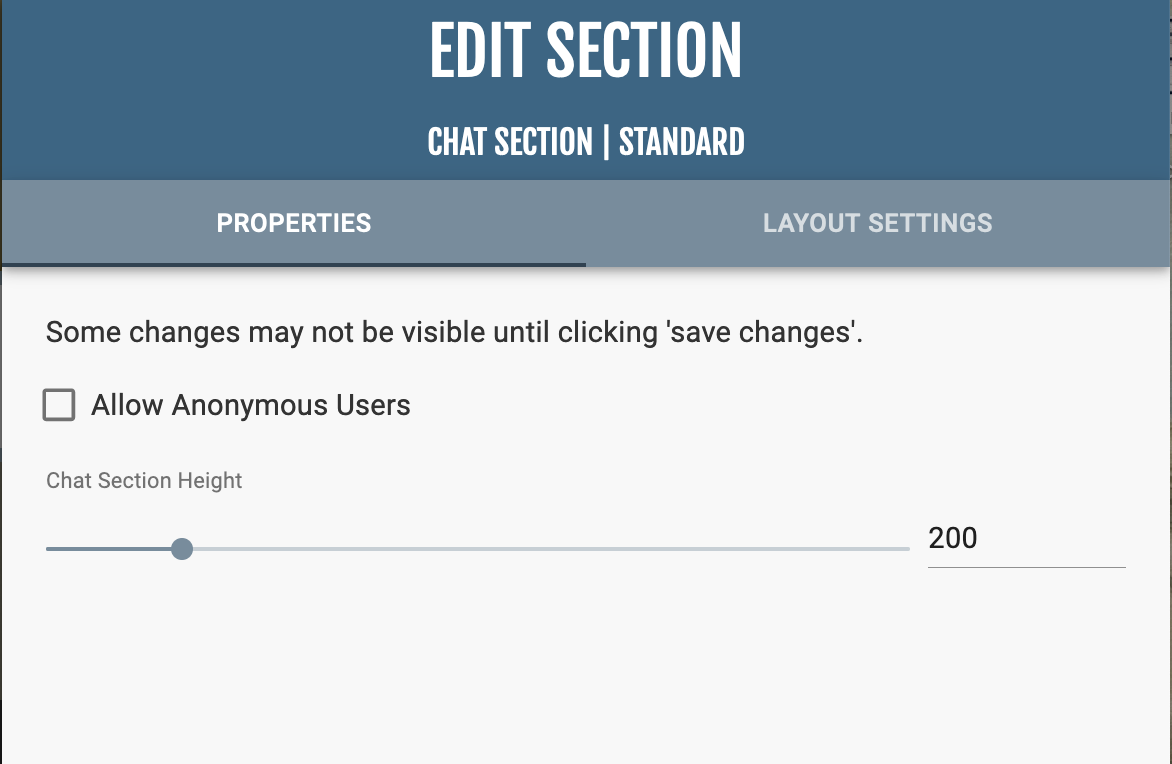 In “Section Properties,” you can manage whether anonymous users can use the chat box and the height of the chat box.