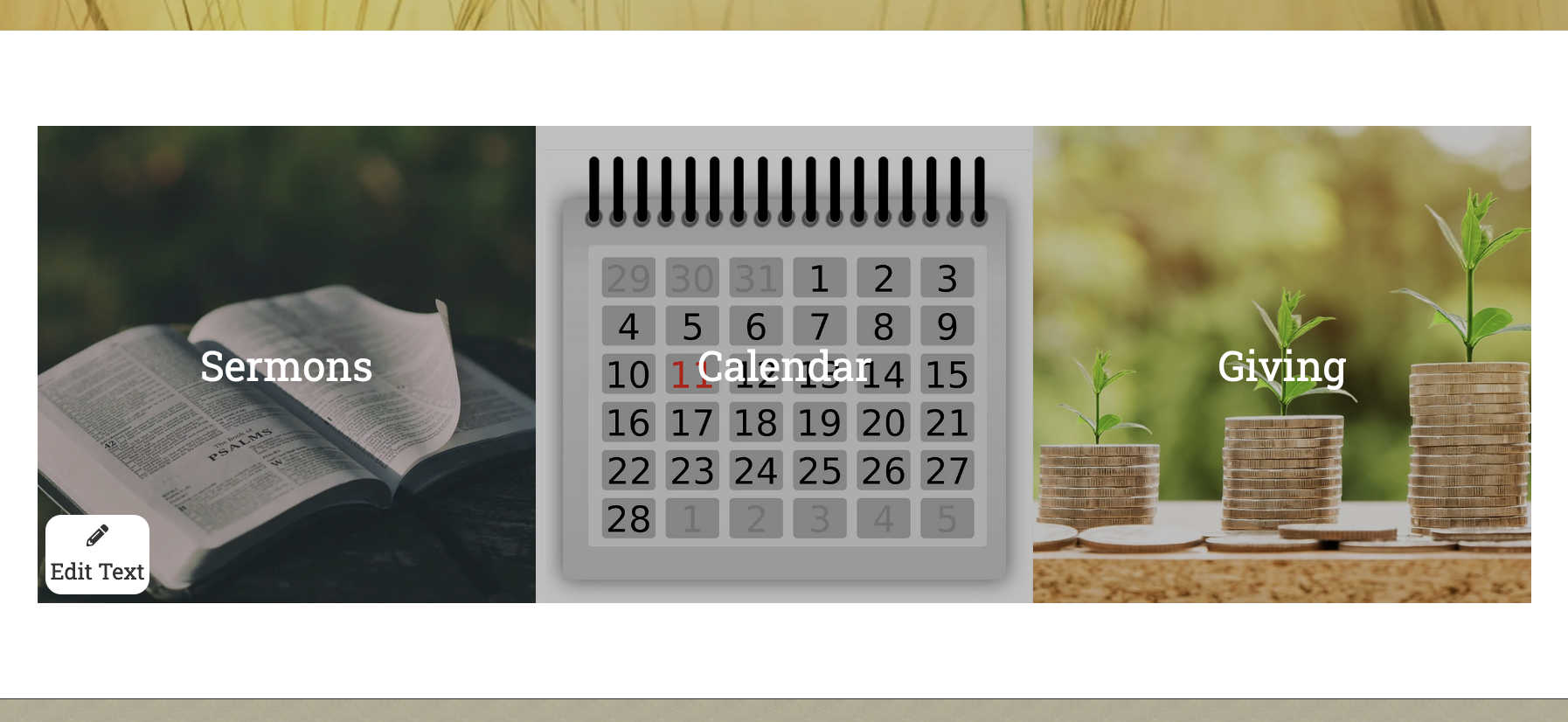 This section displays a grid of image tiles with optional text, that can link to another page, site, external link, etc.