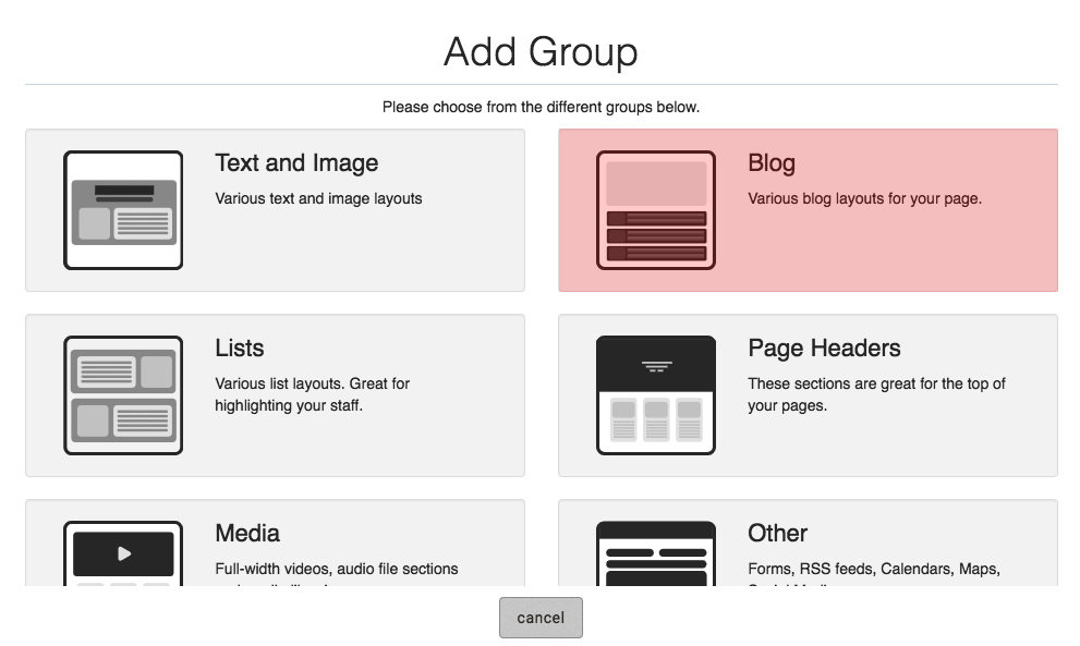 Before adding a Blog group, you must