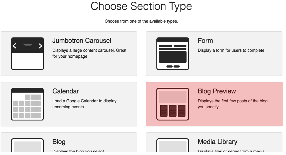 Before adding a Blog Preview section, you must create a Blog