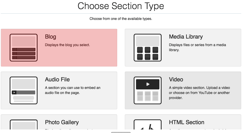 Before adding a Blog section, you must create a Blog
