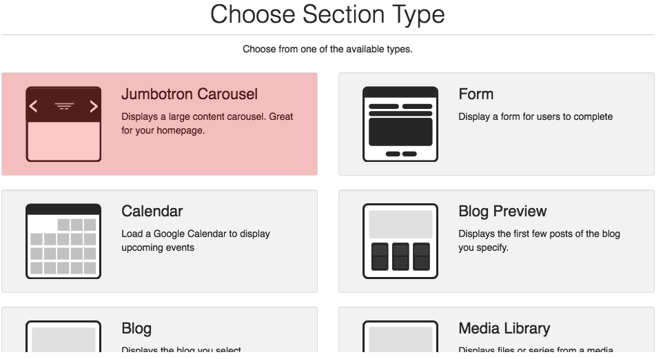 - Select the Jumbotron Carousel section type