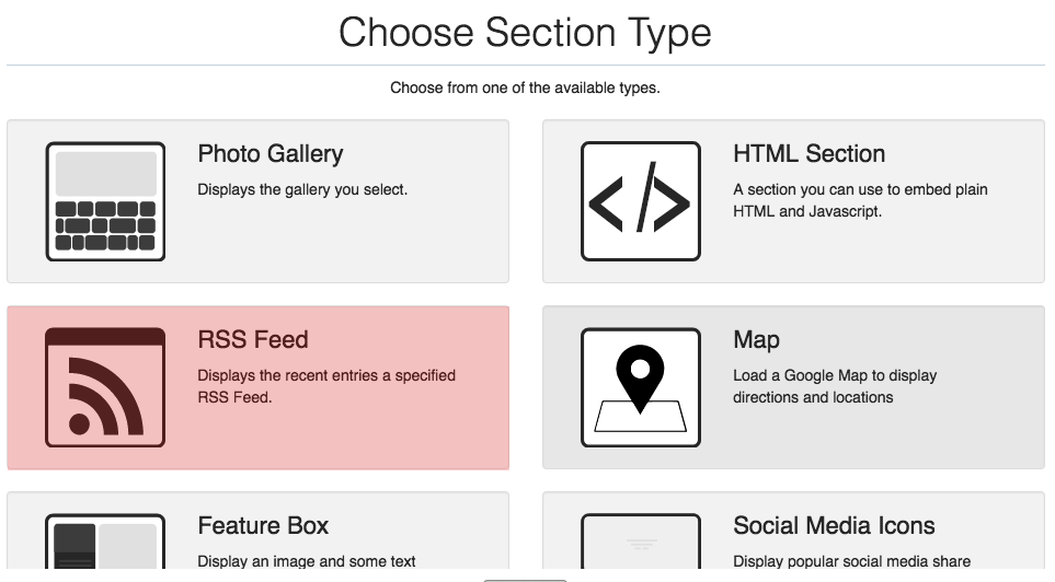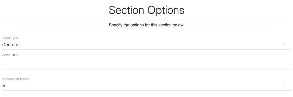 - Enter the URL of the RSS feed you want to display and choose the feed type