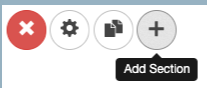 Groups are made up of Sections. You can have as many Sections as you want in a Group. To add a section, click the “Plus” icon in the group where you would like to add it, then choose the section type. For more information on each section type, see Content Sections in these instructions. When you hover over a section, you will be presented with several options to the upper right: